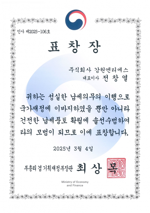 2025³â ³³¼¼ÀÚÀÇ ³¯À» ¸ÂÀÌÇÏ¿© (ÁÖ)°¿ø¿£Æ¼¿¡½º´Â ¼º½Ç ³³¼¼ ÃÖ°íÀÇ »óÀÎ ±âȹÀçÁ¤ºÎ Àå°ü»óÀ» ¼ö»óÇÏ¿´½À´Ï´Ù. ¸ð¹ü³³¼¼ÀÚ·Î ¼±Á¤µÈ ºÐ¿¡ ´ëÇÏ¿© ±¹¼¼Ã», °üÇÒ ¼¼¹«¼(±Ýõ±¸) °ø½Ä ȨÆäÀÌÁö ¹× Çö°ü¿¡ 1³â°£ °Ô½ÃÆÇ ¾Ë¸²¿¡ °ø°³µÇ¾î ÀÖ½À´Ï´Ù. [°ü·Ã ÀÚ·á ¸µÅ©] ±¹¼¼Ã» https://www.nts.go.kr/nts/prgn/selectPrgnTaxpyerBdInfo.do?mi=2214 ±Ýõ¼¼¹«¼ https://s.nts.go.kr/geumcheon/prgn/selectPrgnTaxpyerBdInfo.do?prgnNttYear=2025&prgnNttTmeNm=59&mi=5620
